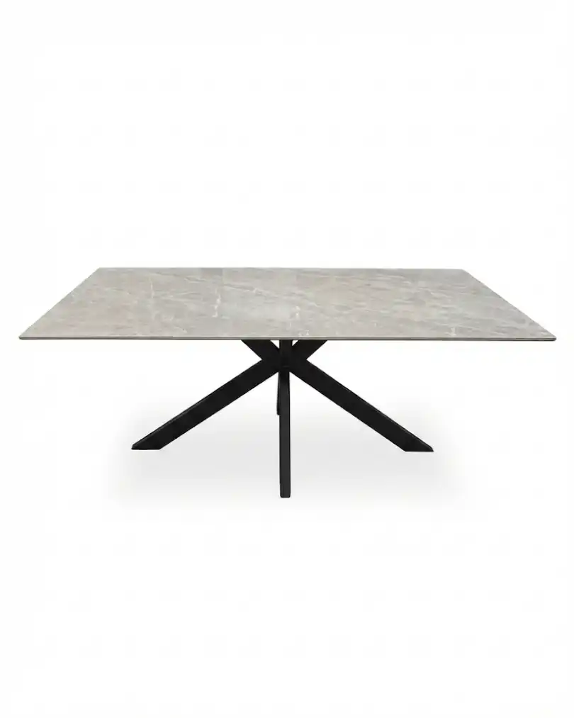 Mesa base de metal negro/tapa de porcelanato gris 1,80×0,90